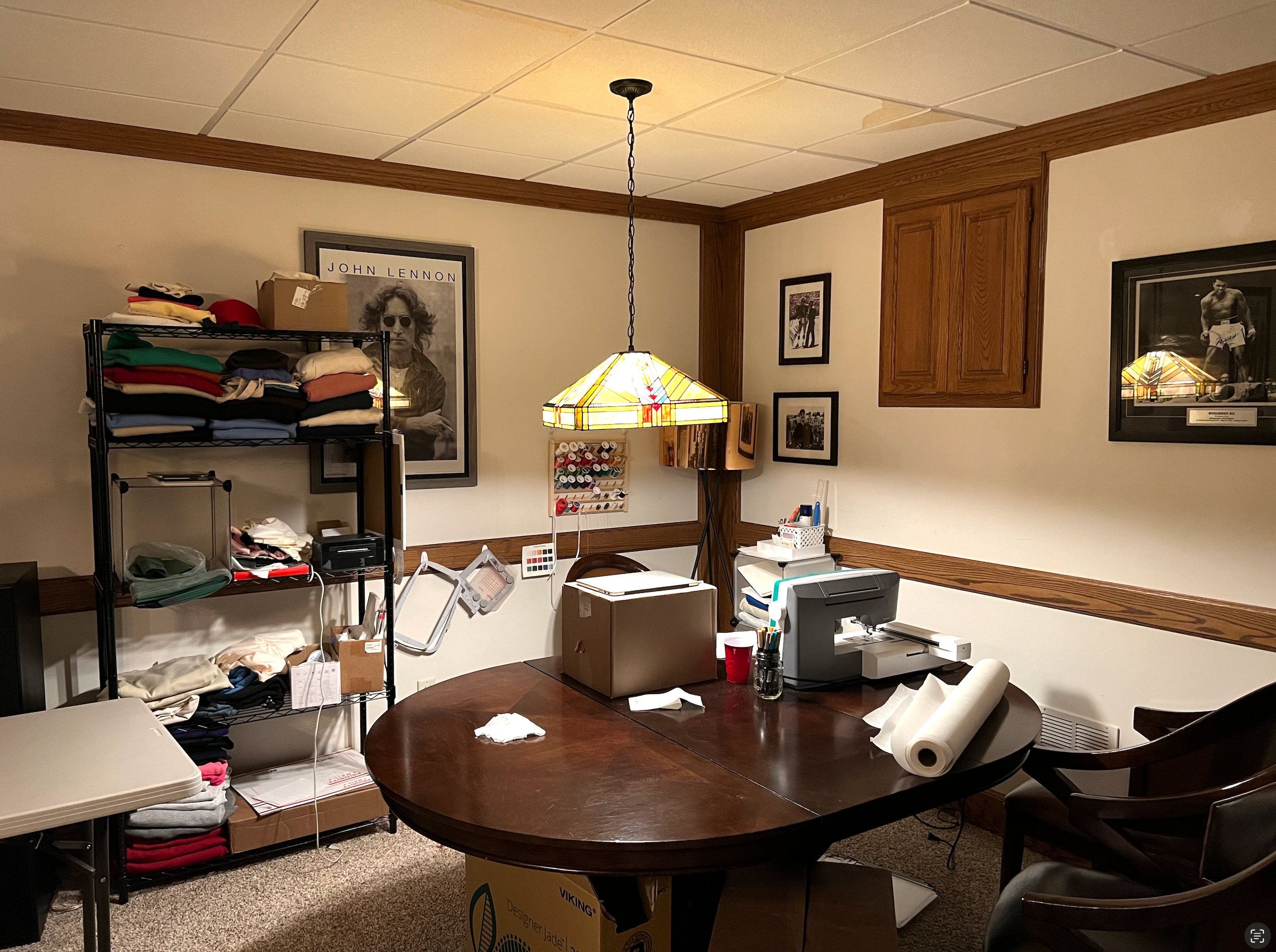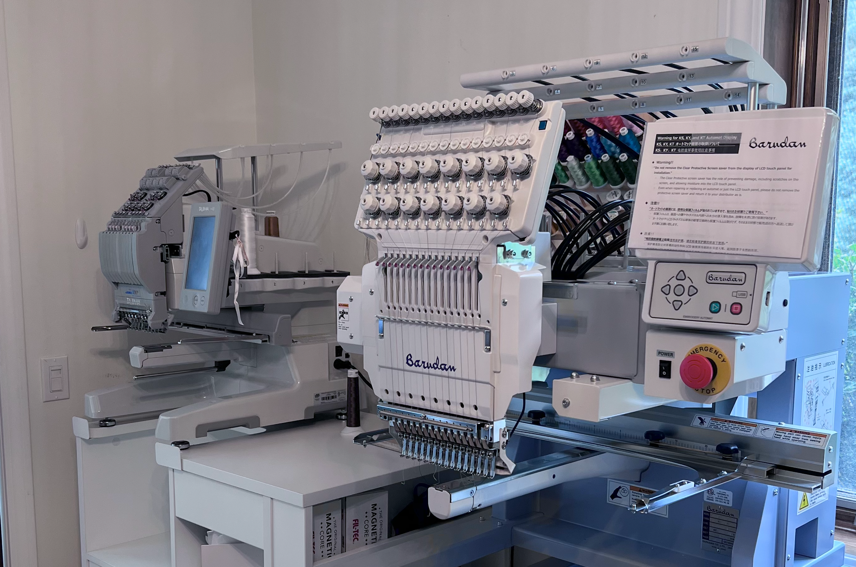 Through the years (and the power of social media) I was lucky enough to be able to quit my corporate job and do something I really loved full time (embroidering, obviously). I managed to upgrade my "office" from a card table in the corner of my bedroom to a wooden table in the basement, and I've now upgraded to the home office (very luxurious). I've also managed to upgrade my first single needle machine to two commercial 8 and 15 needle machines called Peanut and Ladybug (pictured).