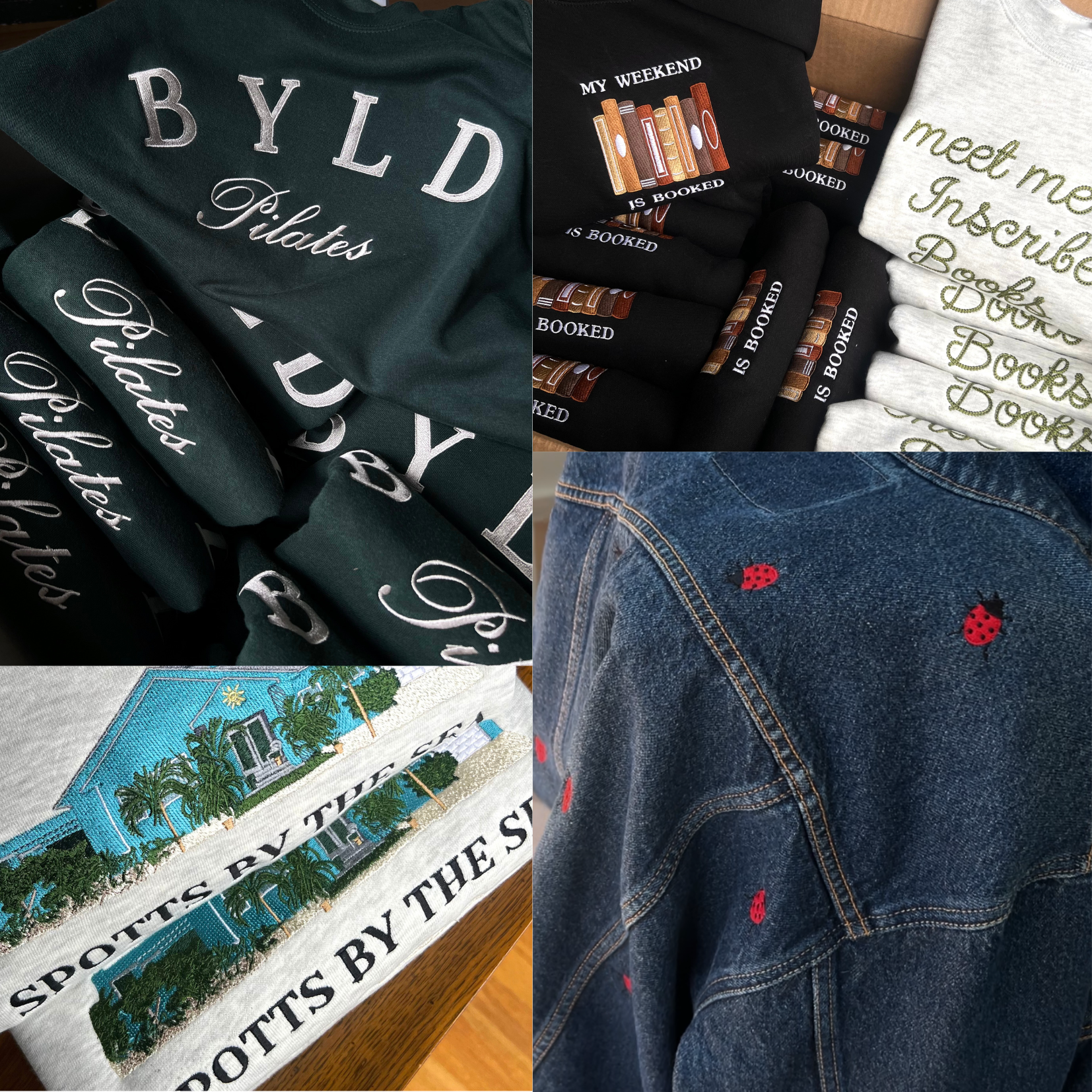 I specialize in embroidery, but also offer print services. Anything is possible, so if you've got an idea, let's make it happen!